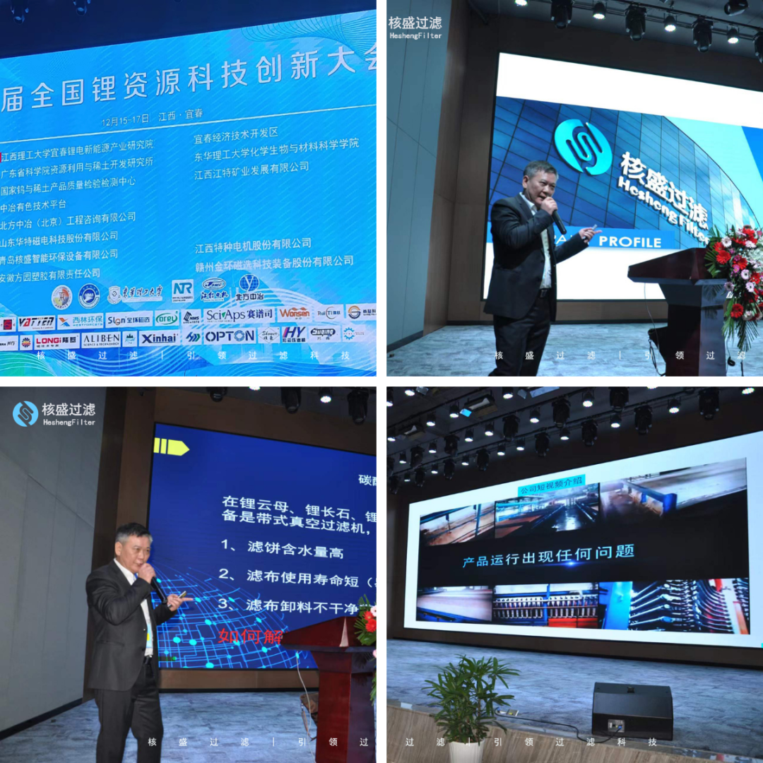 本次大會是鋰行業的一次重要會議,我司作為會議支持單位參會,公司董事長龔景仁代表公司做了《新型過濾機在鋰電行業的應用》的主題發言,向鋰行業推出LDZ履帶加壓真空帶式過濾機、DZY型真空帶濾壓榨過濾機、DGZ型帶式真空高壓深度脫水機、圓盤式立壓機四大創新產品和三項帶濾機創新技術,受到與會代表的高度關注,核盛主張和新科技產品成為大會的一道亮麗風景。