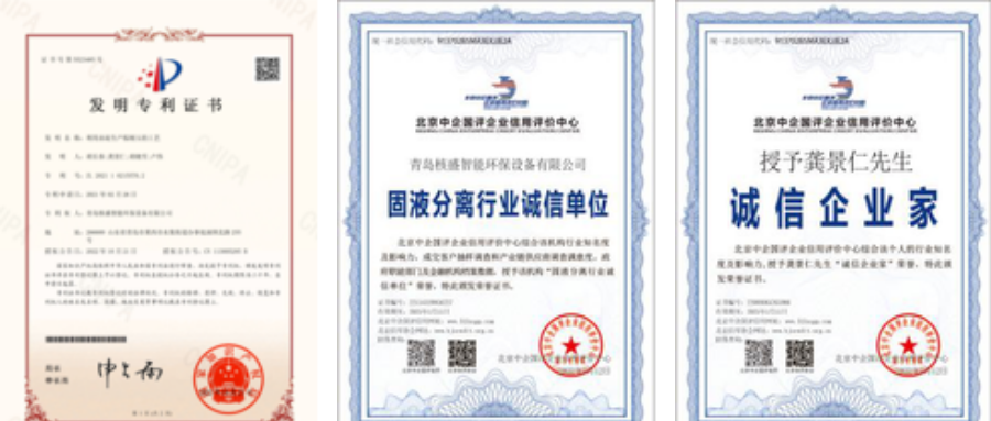 過去的一年核盛榮獲發(fā)明專利1項(xiàng)、實(shí)用新型專利7項(xiàng);還獲得了AAA級(jí)信用企業(yè)、誠信供應(yīng)商、誠信經(jīng)營示范單位、固液分離行業(yè)誠信單位、重合同守信用企業(yè)、質(zhì)量服務(wù)誠信單位、公司董事長龔景仁獲得誠信企業(yè)家稱號(hào)。2022年公司成立了青島市固液分離環(huán)保專用設(shè)備制造技術(shù)創(chuàng)新中心,公司一直專注于固液分離設(shè)備研發(fā)、技術(shù)服務(wù),秉承“創(chuàng)新進(jìn)取,追求優(yōu)異”的企業(yè)精神。