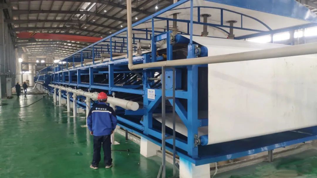 我司新研發的帶式真空過濾洗滌壓榨脫水機在大型電池級磷酸鐵項目上投用成功,該行業過濾洗滌工序一直延用傳統的板框式壓濾機,投資高,工序多,能耗高,用水量大,操作環境惡劣,用工多,整體效率低。這是個行業痛點,行業一直苦苦尋找可替代的先進裝備。