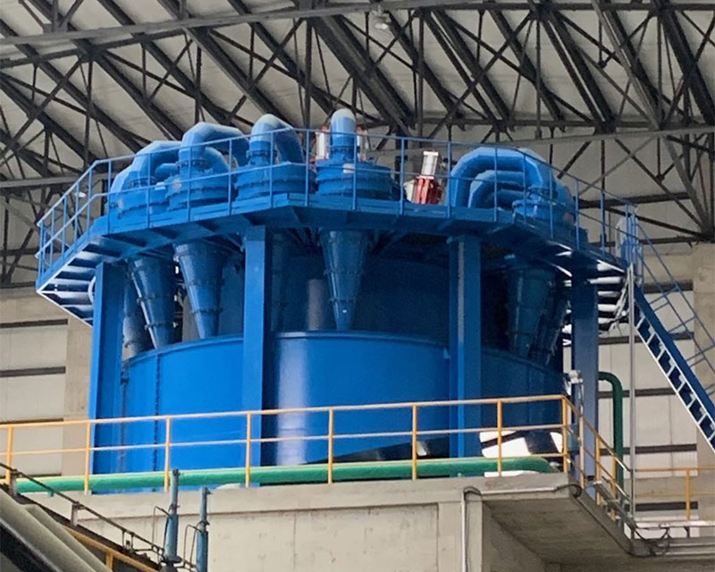 2、 采用立體蝸殼式軸向向下旋轉的流道結構、光滑的內表面,使漿體的發散力更大,水力旋流器分級效果好,磨損更輕,可更換的內套,安裝簡單,維修方便。